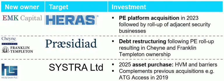 The structure of the market is shaping investment activity with PE consolidating the fragmented base of integrators and service‑heavy operators, while strategics and software investors are directing capital toward OEMs, sensing technologies, and analytics platforms.