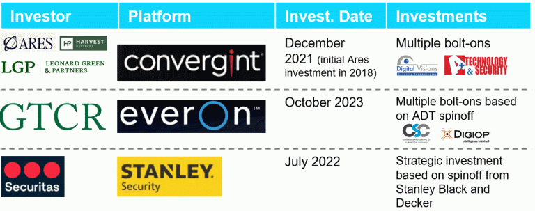 Integrators and installers are seeing a PE-led market rollup; OEMs and platforms are seeing more selective investments.